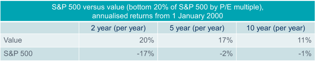 When the Dotcom bubble burst, value investing delivered strong positive returns:
