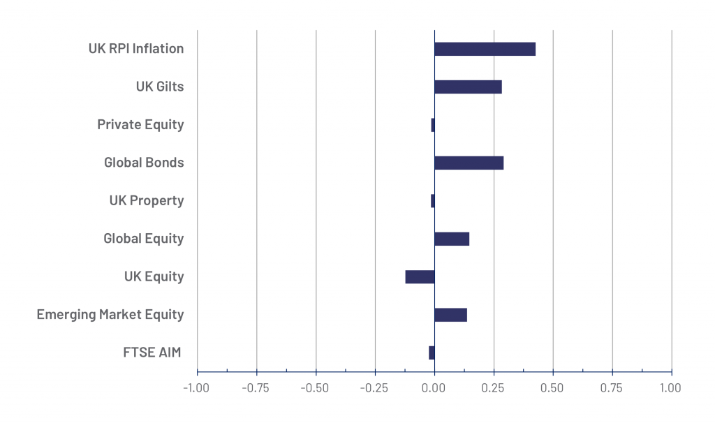 Forestry returns in the UK are correlated to inflation, where the asset class offers protection against rising price levels.
